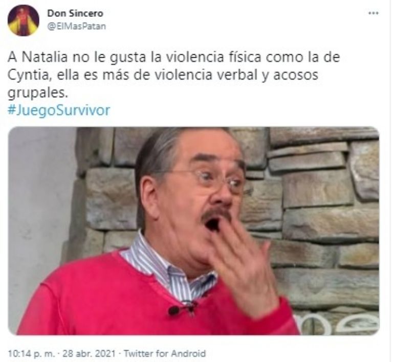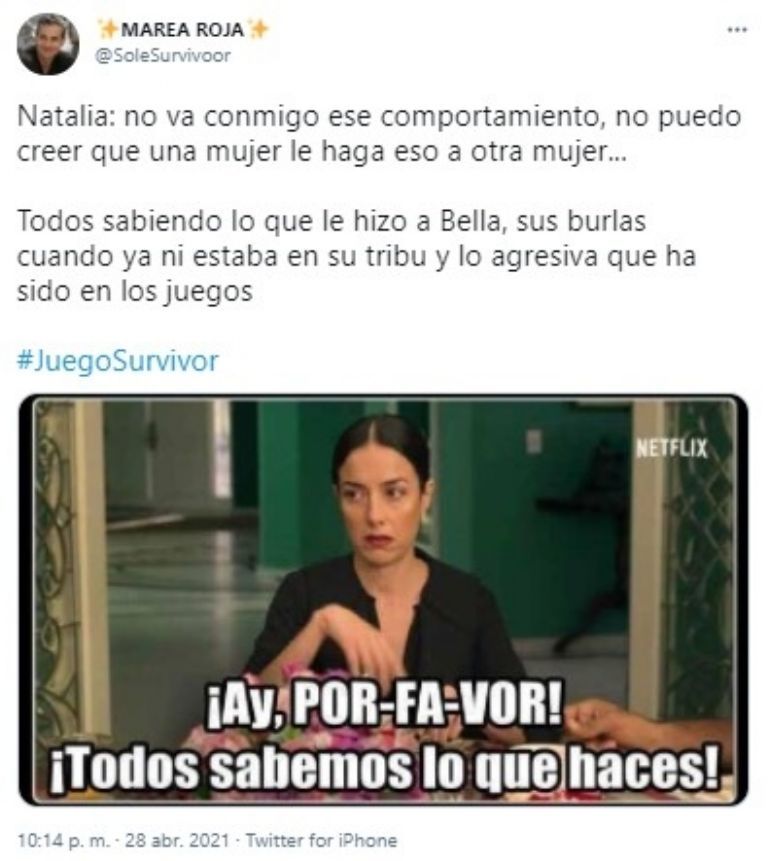 Todo esto en referencia a lo ocurrido entre Cynthia de la tribu Jaguares y Niebla de la tribu Halcones, quienes fueron protagonistas de una pelea, misma en la que se involucró la propia Natalia.