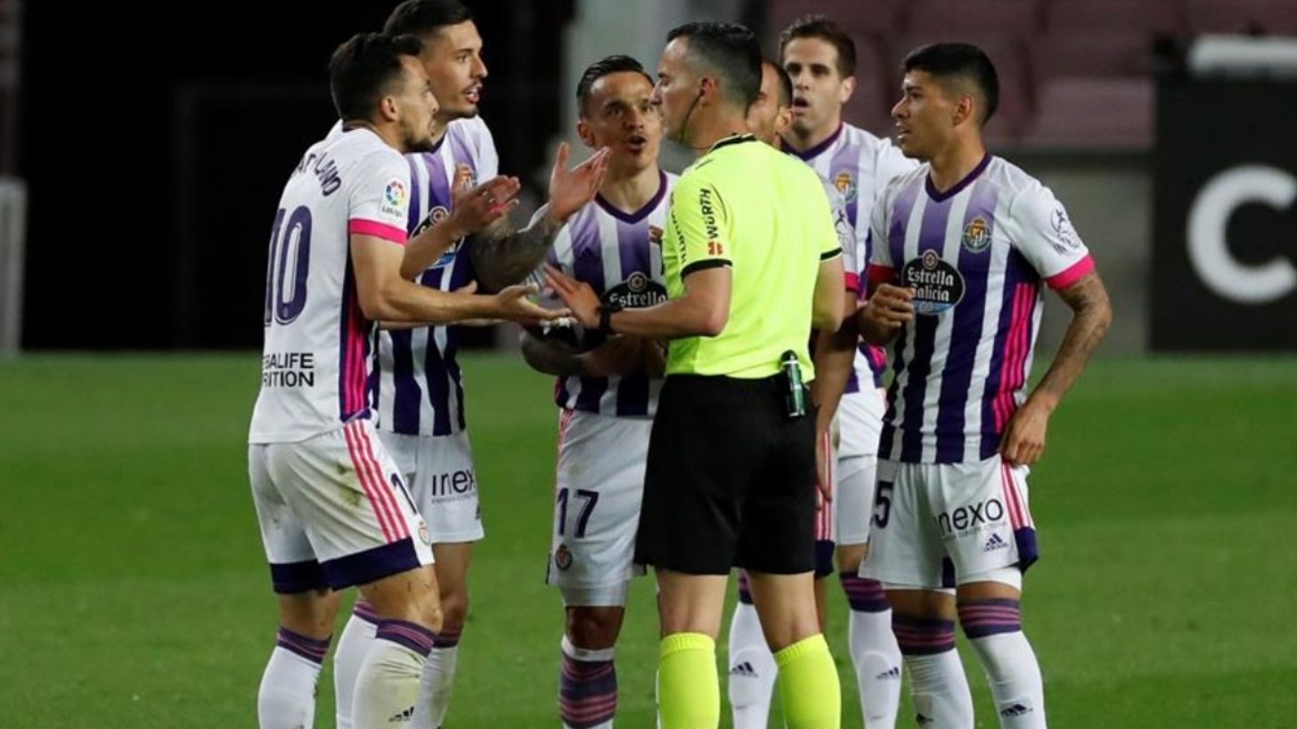 Durante el partido entre el Barcelona y el Valladolid en el Camp Nou, el político cuestionó el desempeño de los árbitros, tanto por el penal que no se marcó por mano de Jordi Alba y después por la tarjeta roja al jugador Óscar Plano.