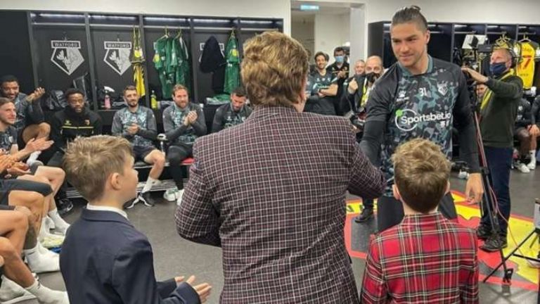 Hace unos días, en medio de la alegría por lograr el ascenso a la Premier League, otra vez con Watford, Elton cayó de sorpresa en el vestidor para felicitar a sus jugadores.