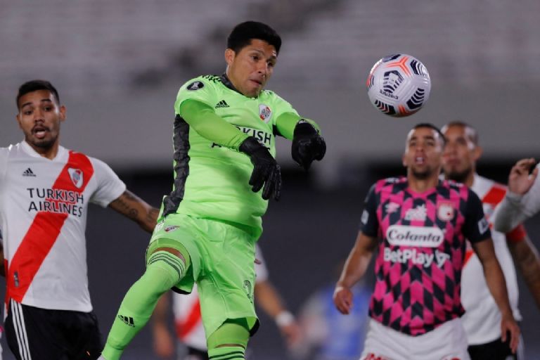 River Plate se abrazó con la épica al derrotar este miércoles al colombiano Independiente Santa Fe 2-1 en la Copa Libertadores con un portero improvisado, Enzo Pérez, y sin ningún suplente por un brote de covid -19 en el plantel que afectó a una veintena de jugadores.