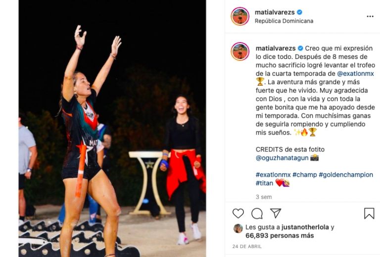 Mati Álvarez, tres veces campeona del Exatlón México, encabezó de nuevo la lista de tendencias en redes sociales. La ex integrante de 'Titanes' compartió un par de historias en su cuenta de Instagram y dio pistas sobre su futuro, a pocos meses del inicio de la nueva temporada.
