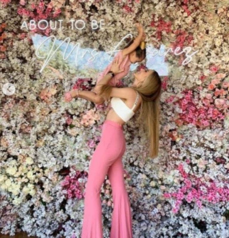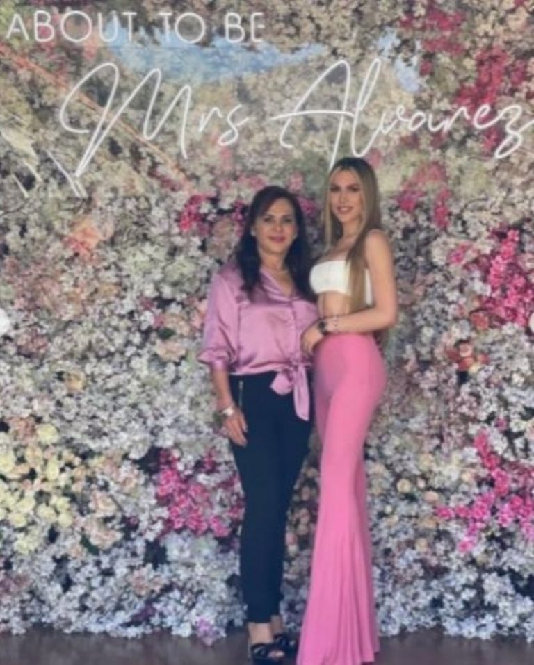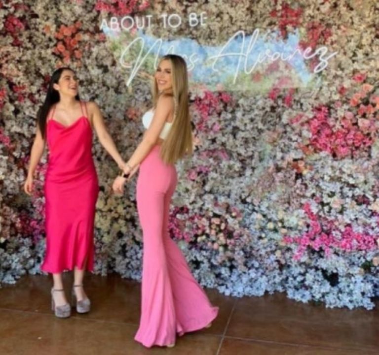 A punto de ser señora Álvarez", se lee en la pared donde posó Gómez junto a su hija y otras integrantes de su familia.