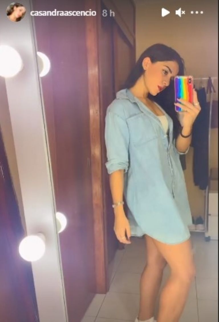 En la imagen publicada en sus Instagram Stories, se puede ver a Casandra Ascencio posando frente a un espejo, presumiendo su atuendo, así como sus tonificadas piernas.