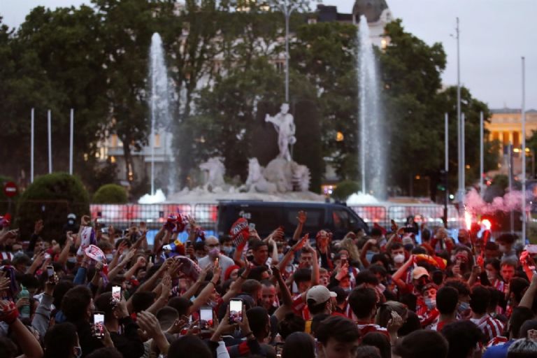 Miles de aficionados del Atlético de Madrid se lanzaron a la calles de la capital española este sábado para festejar el undécimo título liguero de su equipo, tras imponerse 2-1 en Valladolid, desafiando a la pandemia.