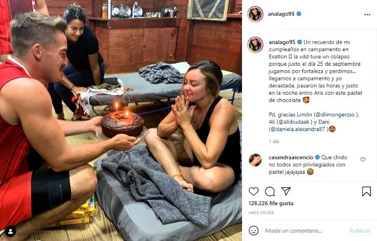 Ese día, el equipo rojo perdió la Fortaleza y Ana dijo estar "devastada" en el campamento. Aún así, después de algunas horas, apareció el Aguileón con un pastel de chocolate. En la publicación, también agradeció a la producción encabezada por David Limón.