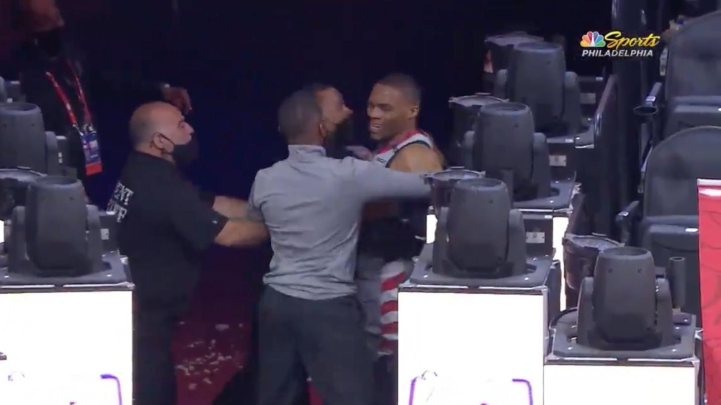 En otro de los cruces del Este, se vivió un gran revuelo cuando un aficionado de los Philadelphia 76ers arrojó palomitas de maíz sobre Russell Westbrook, cuando la estrella de los Washington Wizards abandonaba la cancha por lesión.