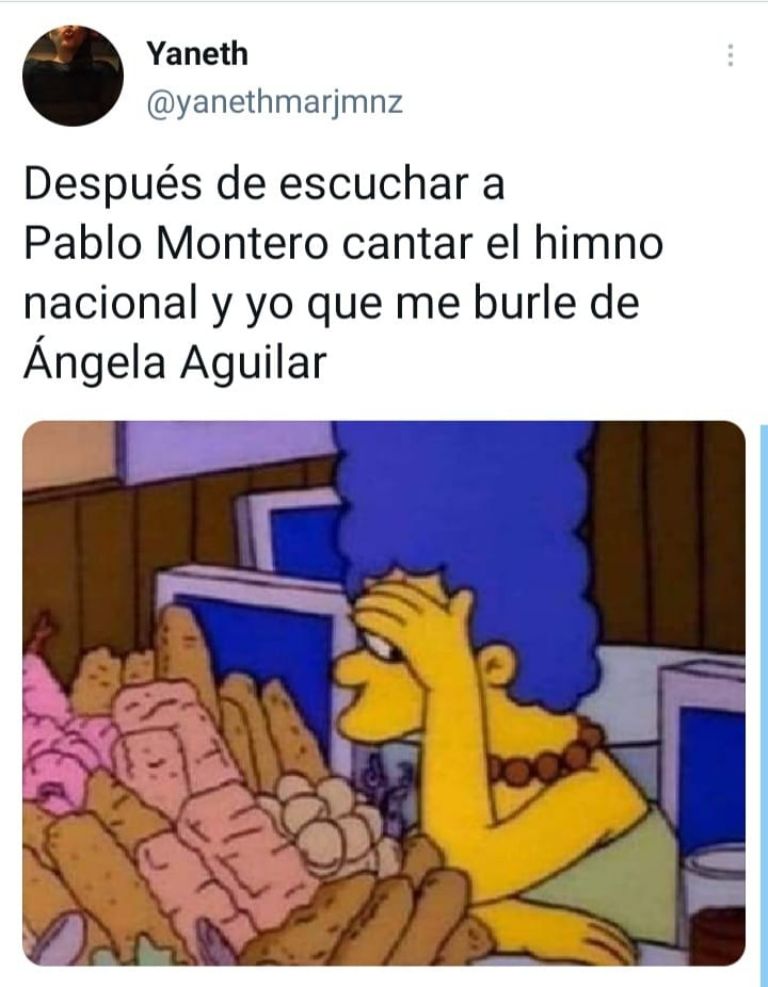 Montero cambió la letra del himno y los usuarios no perdonaron su equivocación con varias imágenes. El intérprete de "Piquito de Oro" fue comparado incluso con Angela Aguilar, quien también se equivocó con la misma pieza en la pelea del Canelo Álvarez hace algunas semanas.