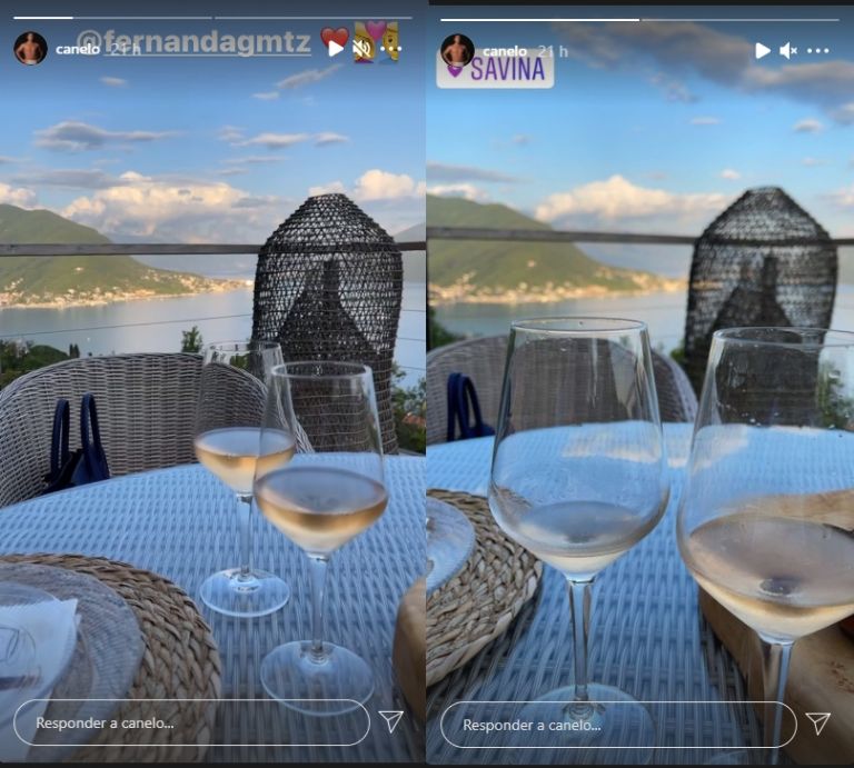 El púgil tapatío subió una Instagram Storie en la que se le puede ver bebiendo unas copas de vino y etiquetó a Fernanda, mientras en una segunda postal, señala que se encuentra en Savina, Montenegro.
