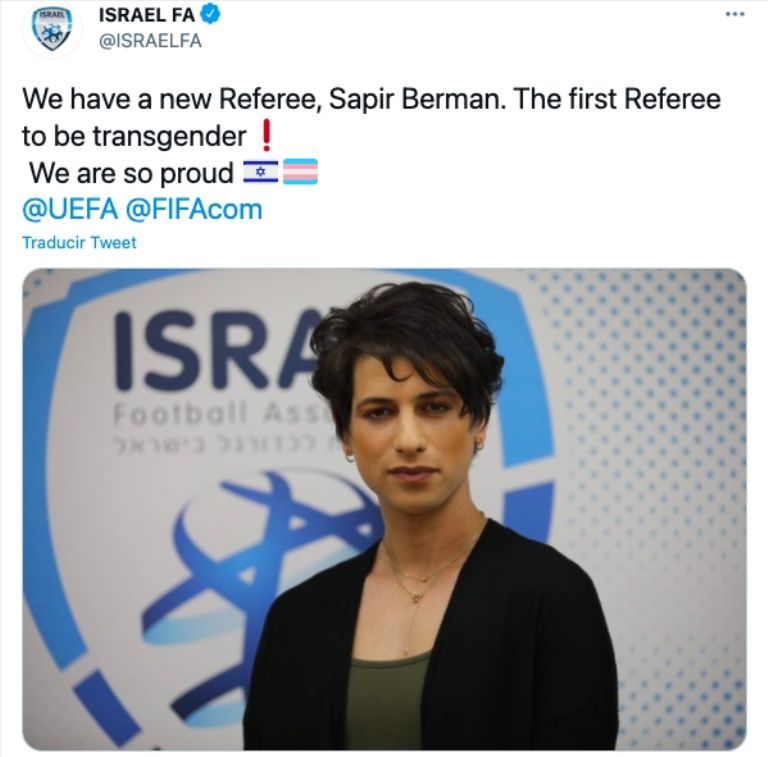Sapir Berman se convirtió este lunes en la primera árbitra transexual en dirigir un partido del campeonato israelí de futbol, una vez consumado su cambio de identidad.