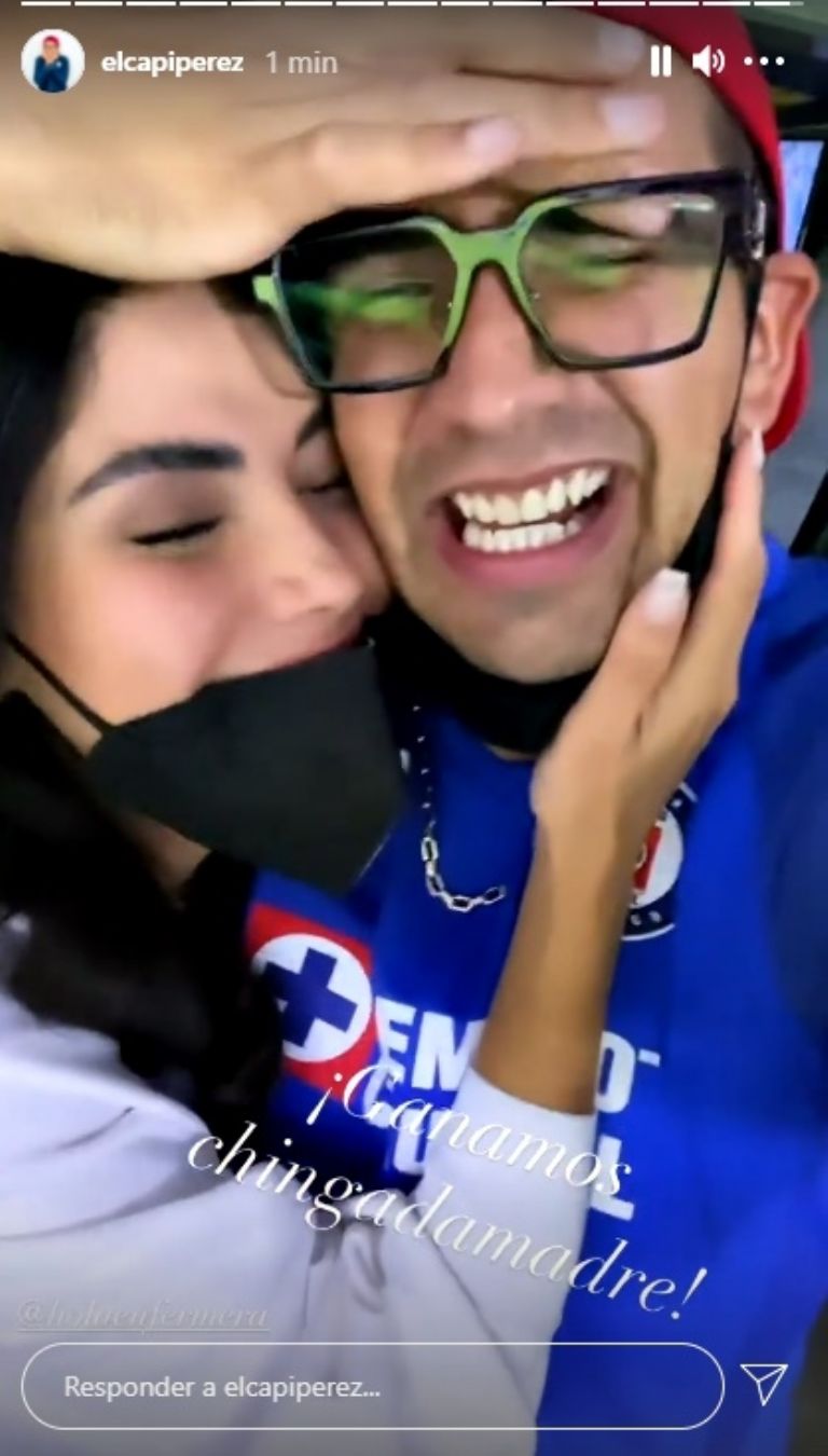 'El Capi' Pérez también explotó con la consagración del Cruz Azul con una historia de Instagram, al borde de las lágrimas, junto a su pareja Itzel.