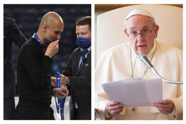 El papa Francisco alabó hoy la "actitud ante la derrota" del entrenador del Manchester City, Pep Guardiola, por su gesto al besar la medalla de plata tras perder el pasado sábado la final de la Liga de Campeones contra el Chelsea.
