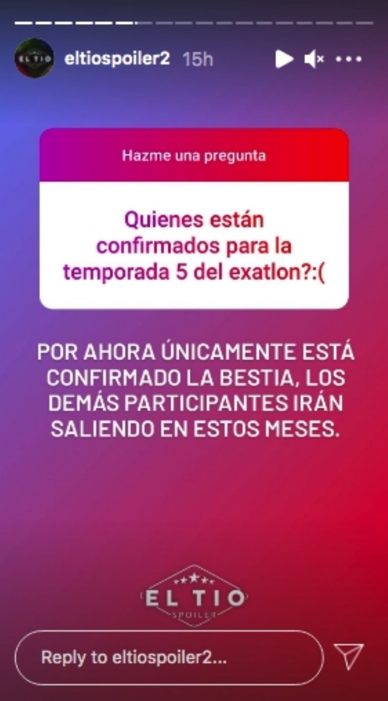 A exactamente un mes de que el Exatlón México llegara a su fin, las noticias de lo que será la nueva temporada se mantienen a la orden del día. Y es que una de las cuentas de spoilers sobre el reality, volvió a confirmar quién es el único personaje que tiene su lugar asegurado en la próxima edición del programa deportivo.