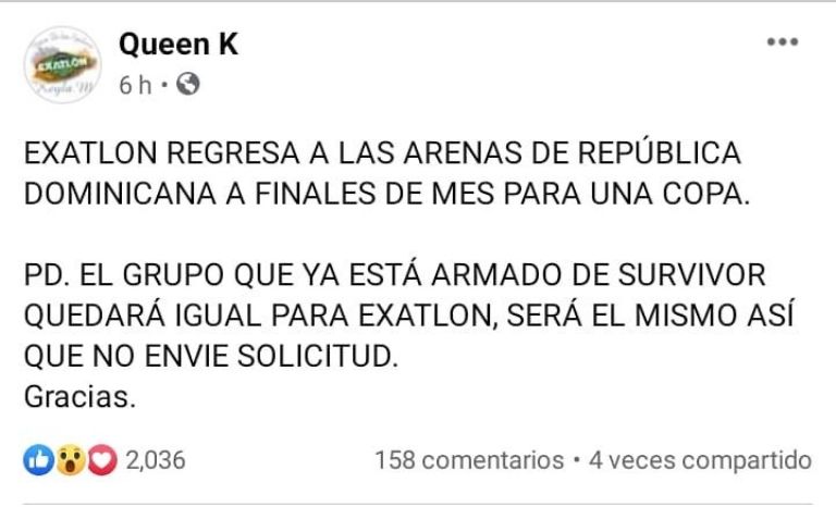 La citada fuente señaló que la Copa Exatlón se grabará nuevamente en las playas de República Dominicana, pero se desconoce cuánto tiempo tendrá de duración y los detalles de la competencia.