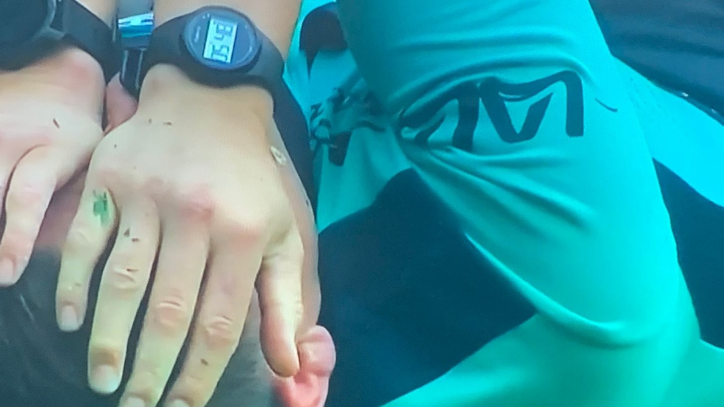 De esa forma, Pablo Hernández quedó sentado por un tiempo, con hielo en la rodilla y apoyó como cuarto juez, junto a las bancas.