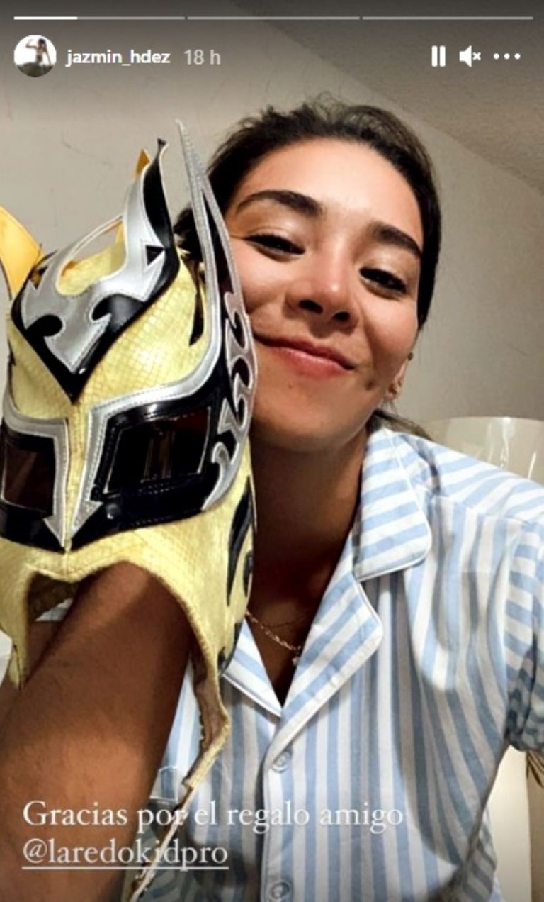 Otra que también dijo presente en la Arena para ver a estos titanes fue Jazmín Hernández, quien incluso presumió un regalo que le hizo su excompañero del equipo rojo Laredo Kid en la tercera temporada. En sus historias de Instagram, mostró que recibió su propia máscara.