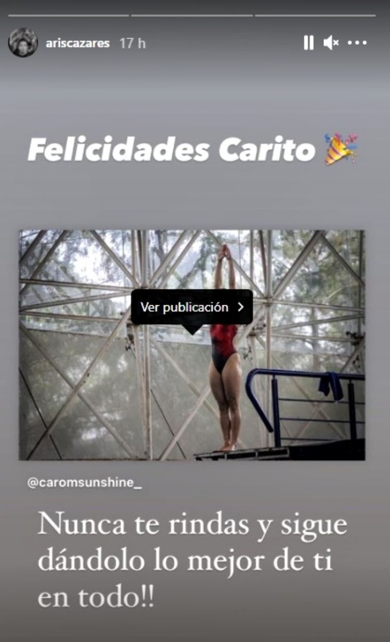 Tras el logro conseguido de su pase a Tokio 2020, Aristeo Cázares no dudó en felicitar a su novia. "Felicidades Carito. Nunca te rindas y sigue dando lo mejor de ti en todo", escribió en una historia de Instagram.