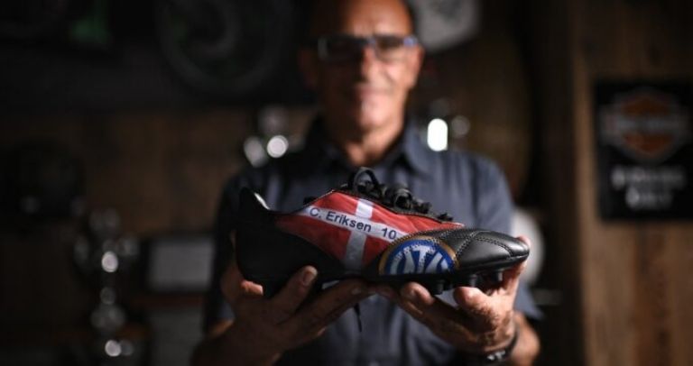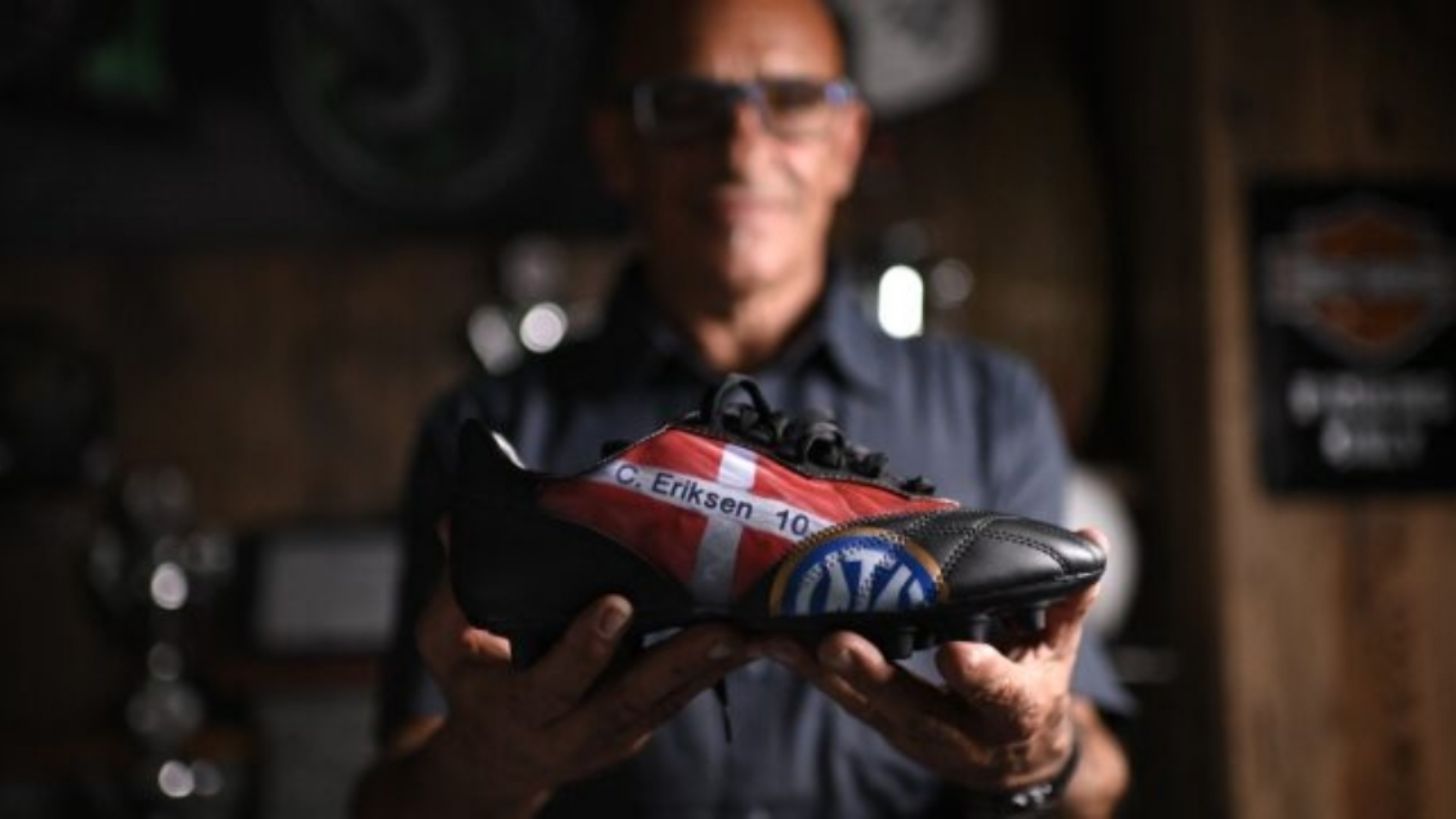 Un grafista italiano personalizó un par de botas de futbol con la bandera danesa y el logo del Inter de Milán en honor a Christian Eriksen, convaleciente después de su dolencia cardíaca durante el partido de la Eurocopa entre Dinamarca y Finlandia.