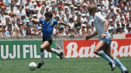 Maradona convirtió los dos inolvidables goles de la Selección Argentina para derrotar 2-1 a Inglaterra (Gary Lineker convirtió el tanto inglés) en los cuartos de final del Mundial de México 1986. Primero, fue el gol con la mano ante Peter Shilton que el árbitro Ali Bennaceur no vio y, luego, la jugada en donde dejó a cuanto inglés se le puso en el camino para anotar, posiblemente, el mejor gol en la historia de la Copa del Mundo.
