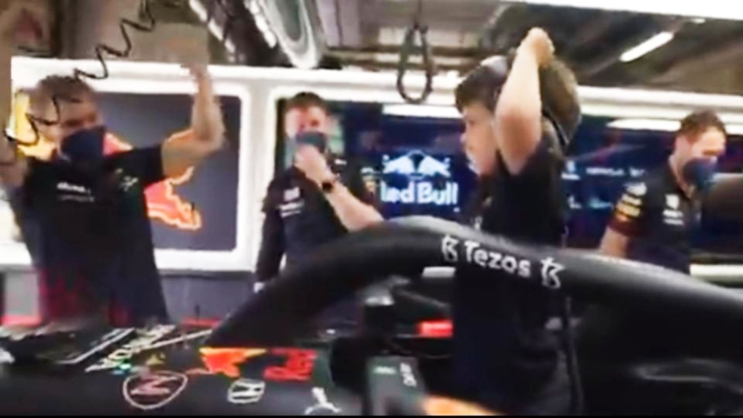 Checo junior echa un vistazo más de cerca al auto de papá", escribió la cuenta de Red Bull Racing.
