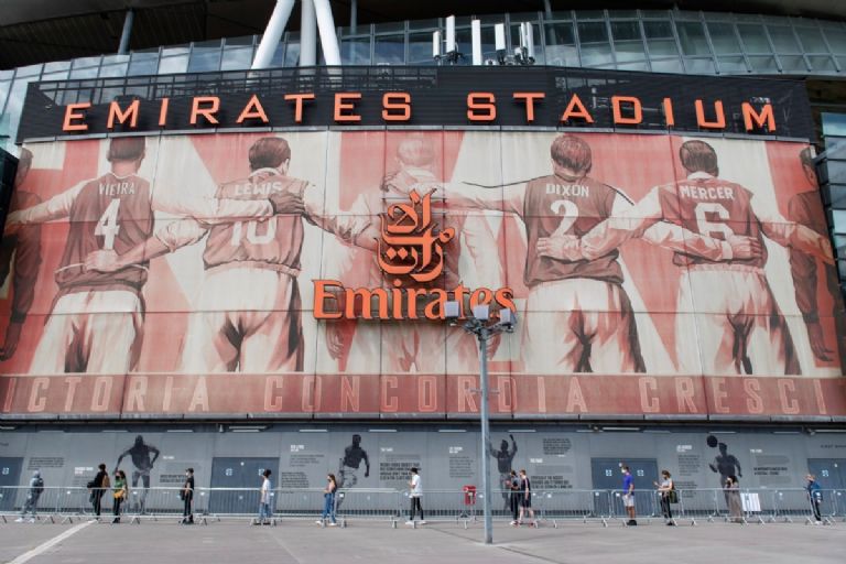 Una larga cola serpentea frente al estadio del Arsenal, pero nadie ha venido a ver al famoso equipo de fútbol londinense. El recinto se transformó en centro de vacunación temporal, en el marco de los esfuerzos británicos contra la variante Delta del coronavirus.