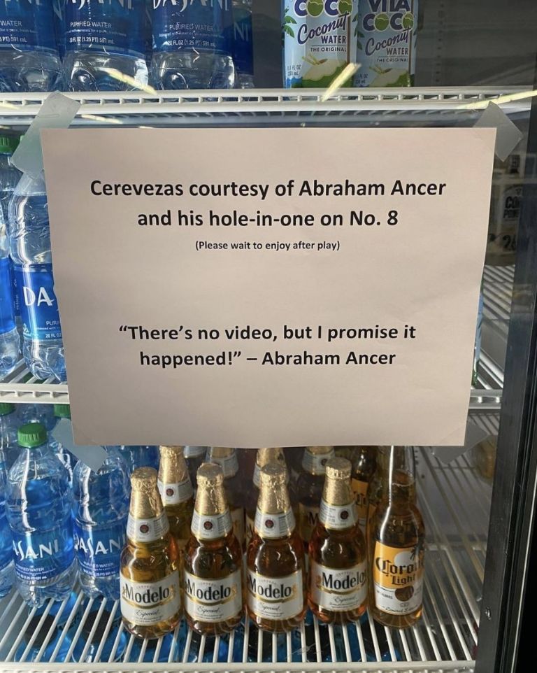 Ancer, de 30 años de edad, tuvo una curiosa celebración del hole-in-one en el Travelers Championship: como buen mexicano, regaló cerveza a los asistentes y compartió su rúbrica en redes sociales.