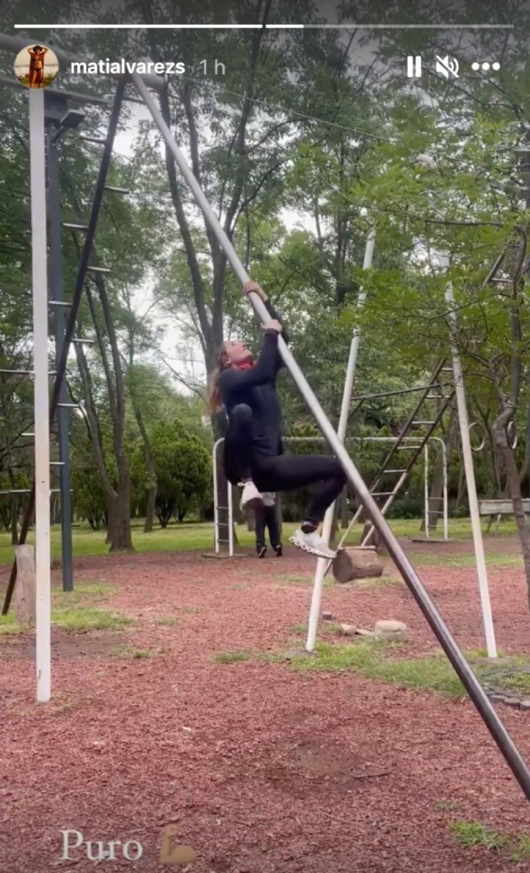 De acuerdo con las imágenes, Mati salió a ejercitarse a algún parque cercano a su domicilio y no dejó pasar la oportunidad de grabar uno de sus entrenamientos.