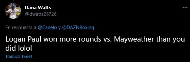 Sin embargo, las respuestas a este comentario de Canelo Álvarez fueron muy diversas. Muchos coincidieron con su apreciación y otros directamente decidieron criticarlo. Las críticas también se volvieron un trolleo para el tapatío, ya que los usuarios le recordaron la derrota que tuvo con Mayweather en 2013.