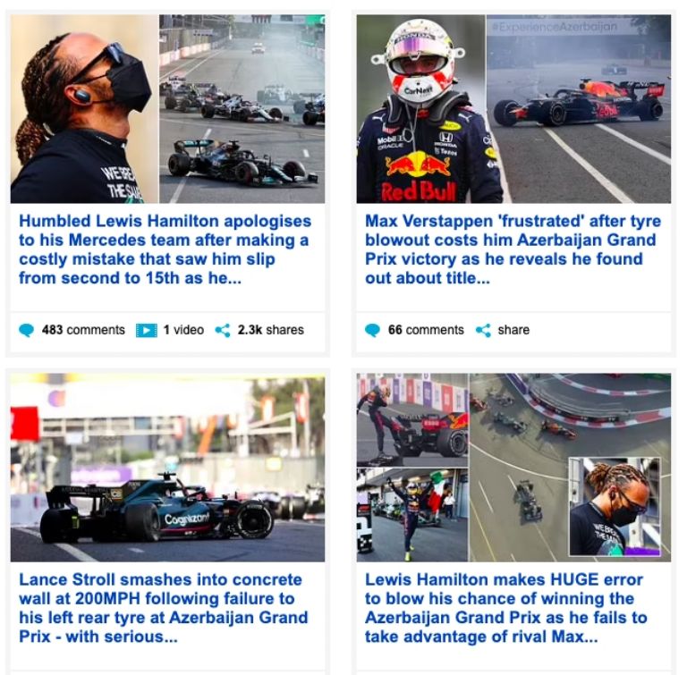 "Hamilton comete un gran error al desperdiciar su oportunidad de ganar el Gran Premio de Azerbaiyán al no aprovechar la rotura de la llanta de su rival Max Verstappen y con Checo Pérez obteniendo una sorprendente victoria ", publicó.
