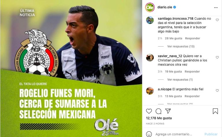En Argentina, el Diario Ole hizo eco de la noticia que explotó en México. "¿Lo veremos vestir la Tricolor?", preguntó el rotativo a sus seguidores, provocando todo tipo de reacciones en contra del actual goleador del Monterrey.
