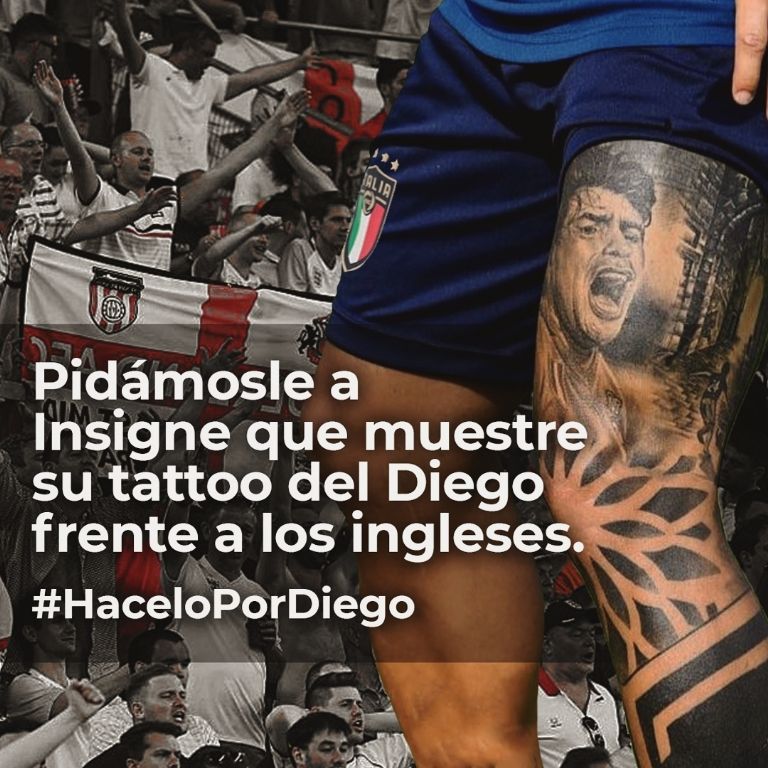 Miles de aficionados de Argentina le pidieron a Lorenzo Insigne que enseñe su tatuaje de Diego Armando Maradona si es que le mete gol a Jordan Pickford o si Italia derrota a Inglaterra en la Gran Final de la Eurocopa 2021.