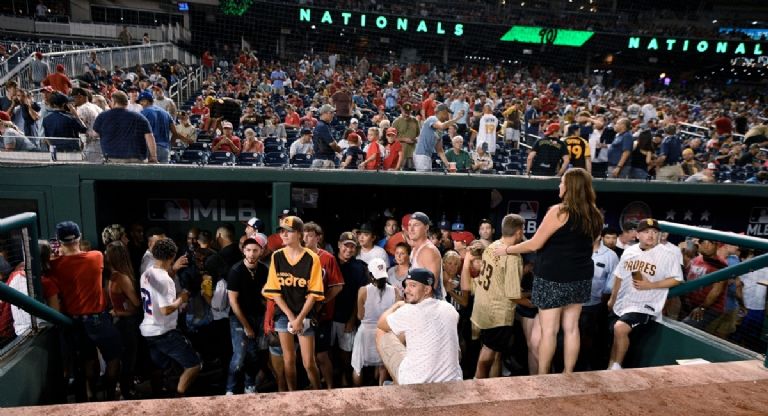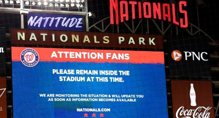 Los Nacionales anunciaron después que se había presentado un incidente fuera del parque. En la pantalla electrónica desplegaron un mensaje que pedía a los espectadores permanecer en el interior.