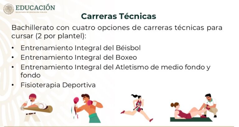 Los planteles irán dirigidos a los jóvenes que han concluido su secundaria y desean emprender una carrera en el deporte en el programa de Bachillerato Tecnológico de Educación y Promoción Deportiva (BTED).