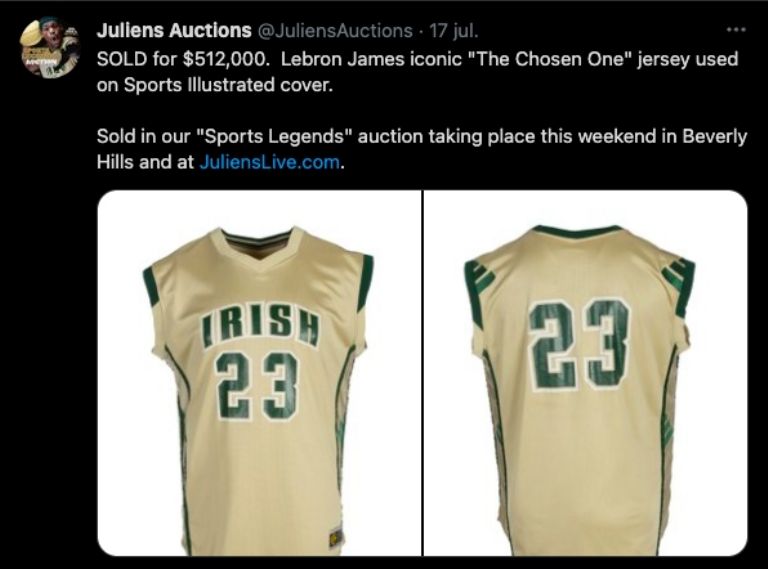 Cabe destacar que la casa de subastas de Beverly Hills había estimado el valor de la camiseta de LeBron James en entre 400 mil y 600 mil dólares, por lo que se cumplieron sus cálculos.