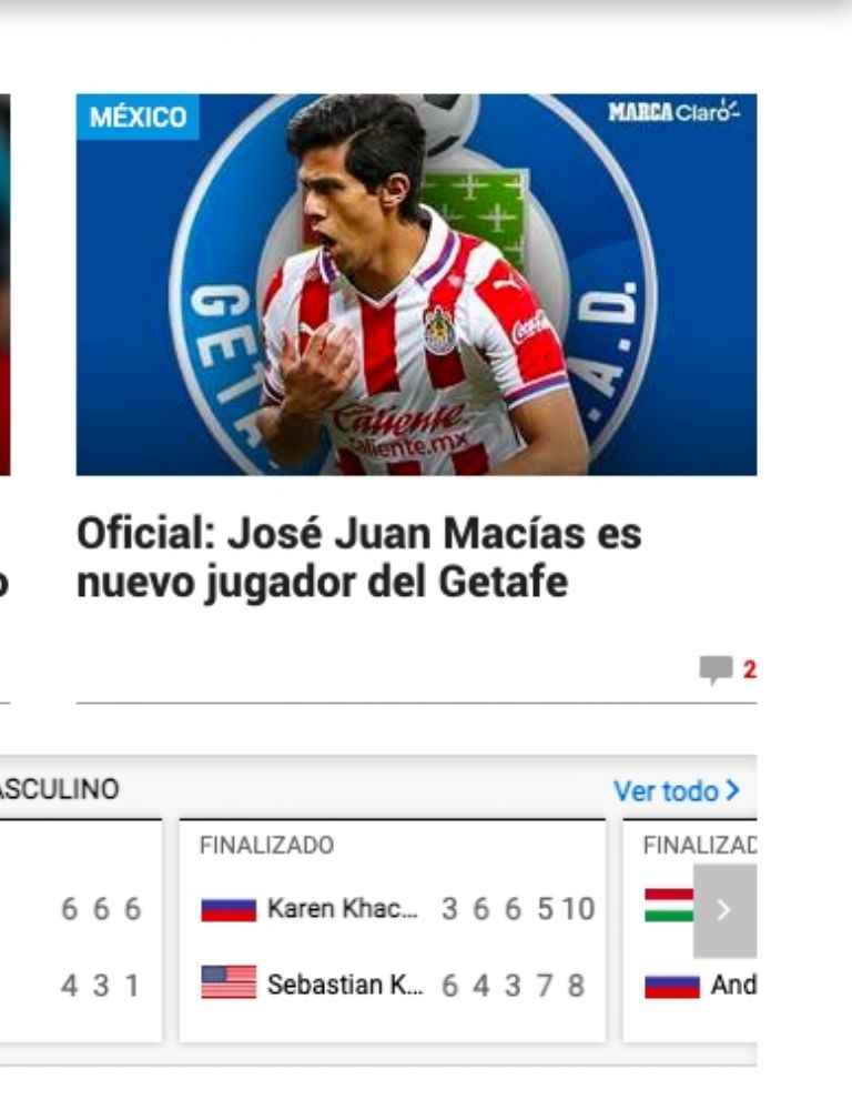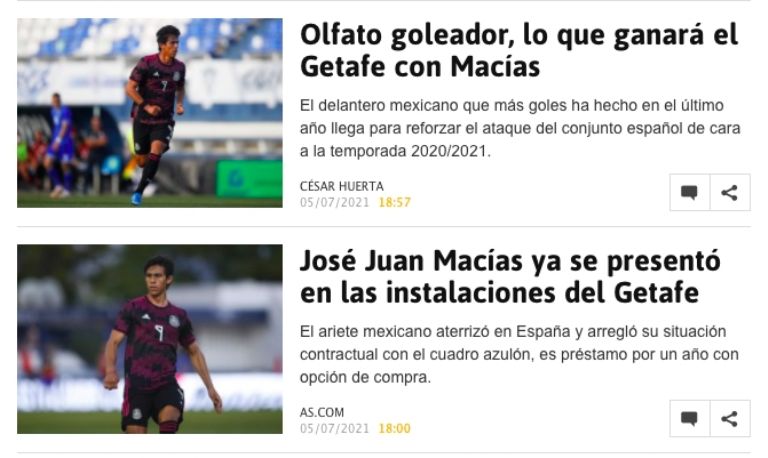 Entre ellos, estuvo el Diario AS, uno de los más prestigiosos del país, que señaló "el olfato goleador" de Macías y la posibilidad de convertirse en el nuevo goleador del equipo. Asimismo, el diario Marca precisó los detalles de su arribo y contó que el mexicano ya conoció las instalaciones del club, que serán su casa por los próximos meses.