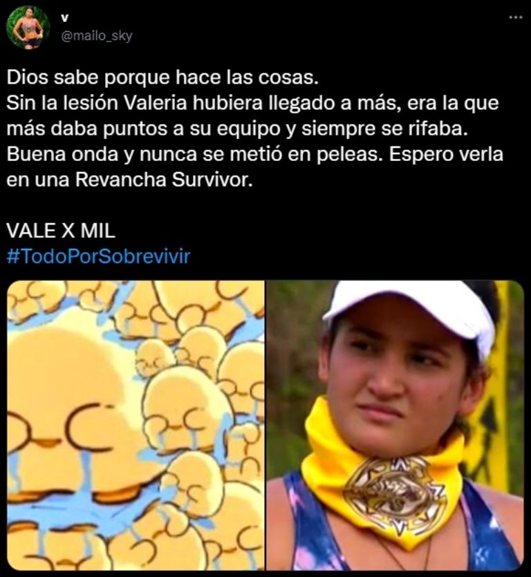 Fue una noche difícil en Survivor México, ya que los participantes que fueron a eliminación son de los más fuertes de la supervivencia y, finalmente, se va una de las que siempre brindaba puntos a los Halcones en los duelos ante Jaguares. Valeria era la líder de efectividad en cuanto a victorias, tras la salida de Kristal Silva.