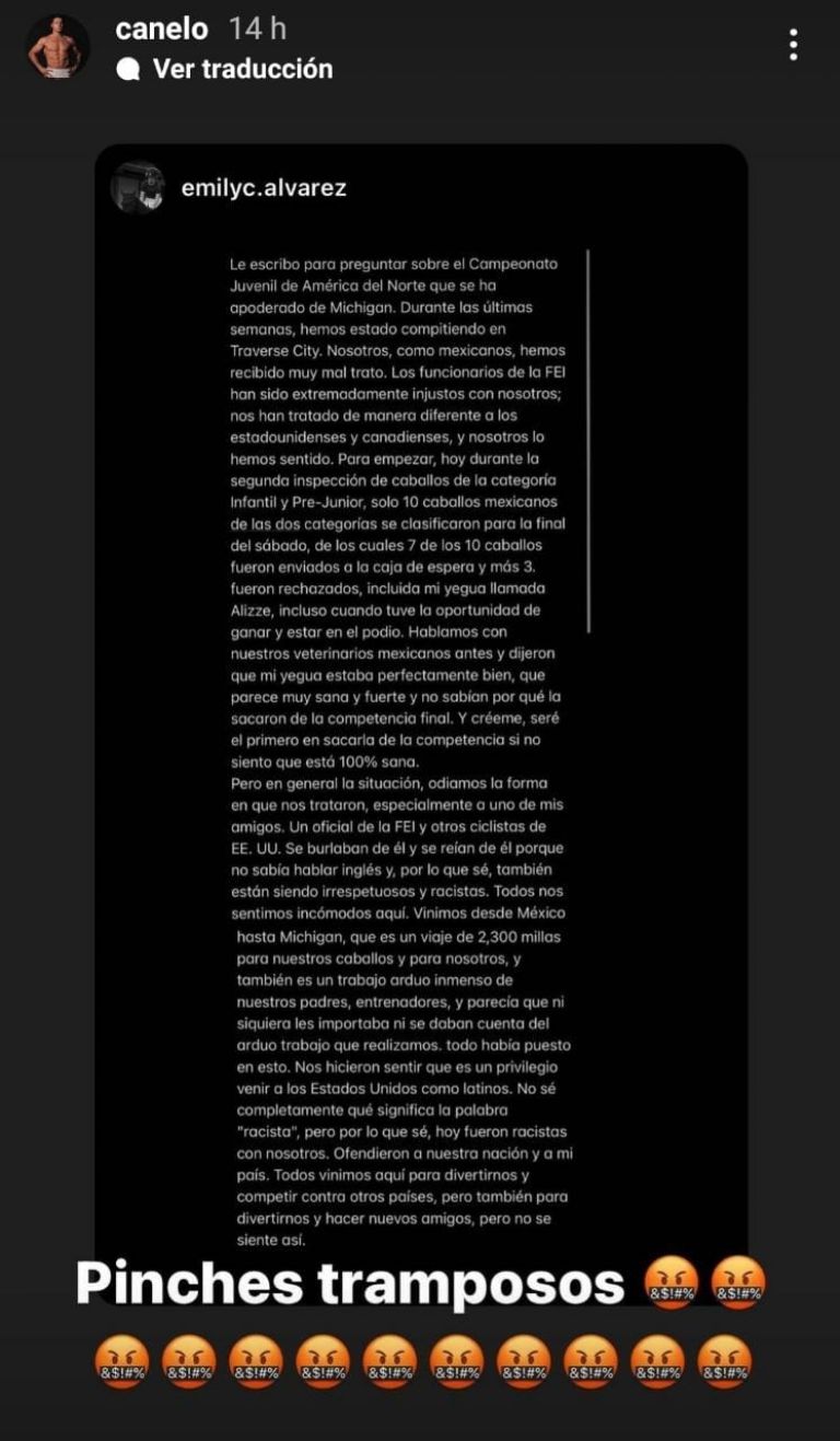 El ‘Canelo’ compartió la historia en su cuenta de Instagram para exhibir a la Federación Ecuestre Internacional ante sus más de 10 millones de seguidores.