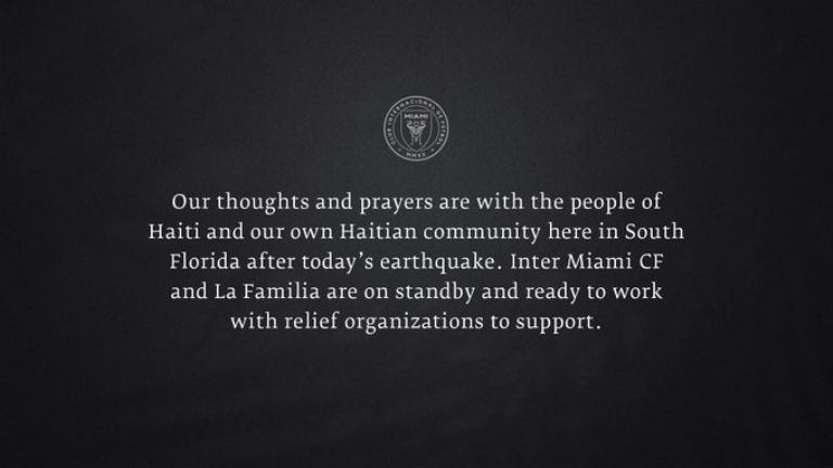 "En nombre de todos nosotros en Miami FC, nuestros pensamientos están con los afectados por el devastador terremoto que azotó Haití hoy. Miami FC está trabajando actualmente con agencias locales para encontrar formas de ayudar con los esfuerzos de ayuda", escribió el cuadro de Florida.