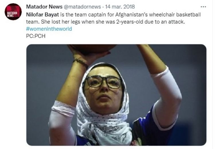 Y entre las personas que se encuentran atrapadas en el país está la basquetbolista Nilofar Bayat, que trabaja en el Comité Internacional de la Cruz Roja, es capitana de la selección nacional de basquetbol en silla de ruedas de Afganistán y estudia derecho.