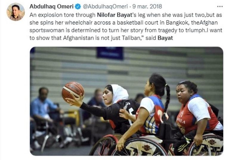 “Tengo mucho miedo y estoy preocupada por mi futuro, quiero irme de mi país. Me encanta mi trabajo y me encanta ayudar a otras mujeres que tienen discapacidad, pueden sentir su dolor y puedo entenderlas. Pero después de esto, no habrá una forma de volver a jugar al baloncesto. Es muy difícil para mí y para mis compañeras de equipo”, dijo Nilofar.