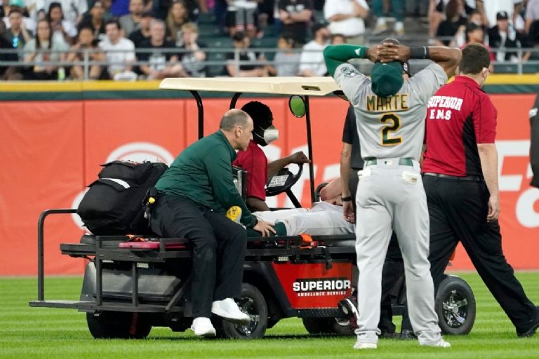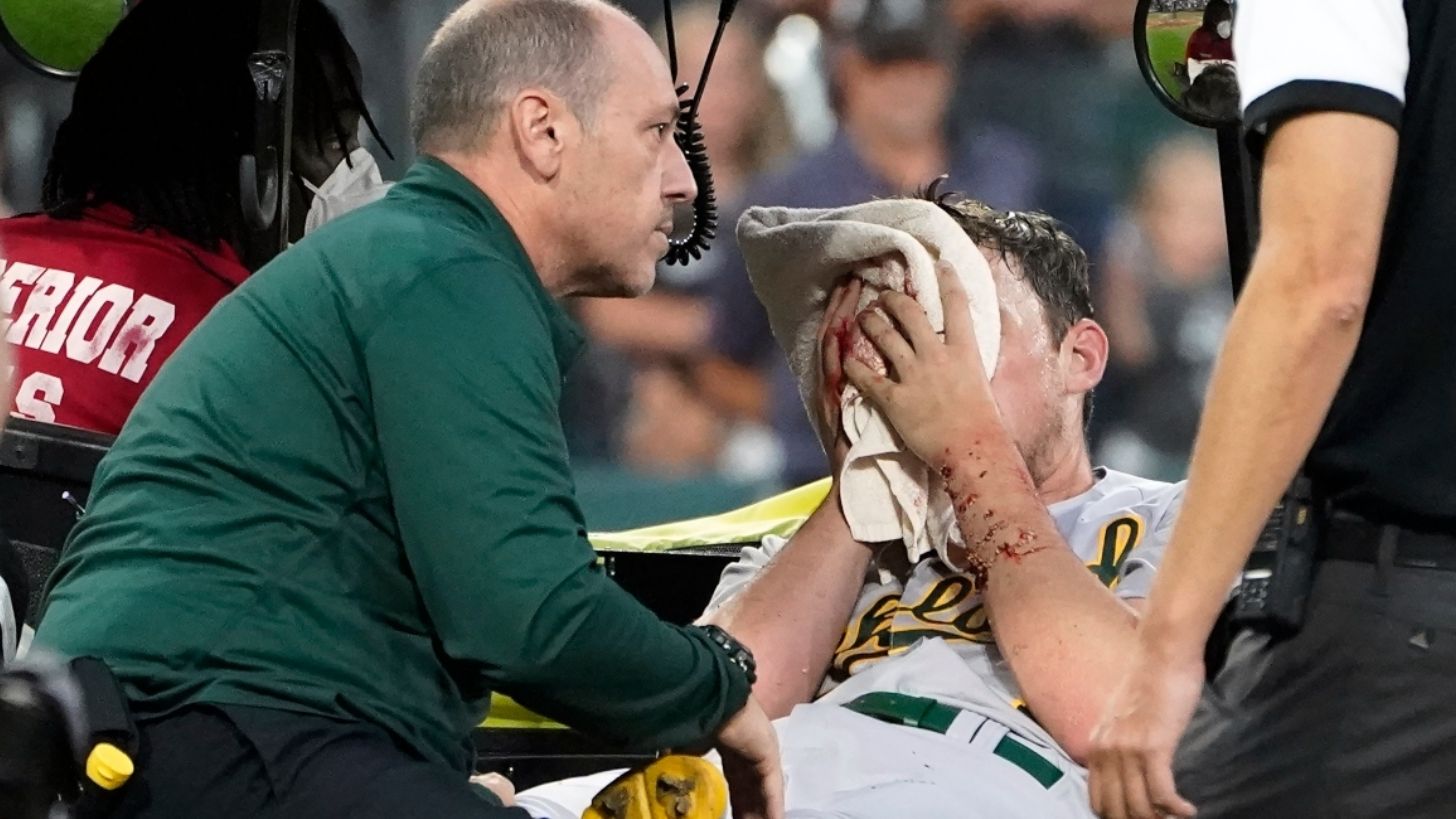 Ante la mirada de varios peloteros consternados, Bassitt fue atendido en el terreno. Con ayuda, subió a un carrito, mientras apretaba una toalla contra su rostro.