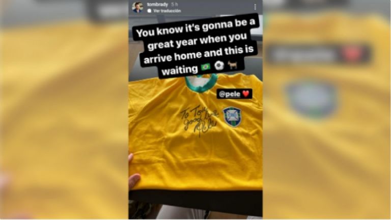 El jugador de Tampa Bay Buccaneers recibió una playera autografiada cortesía del ex futbolista y mítico de Brasil, Pelé. Tom no dudo ni un minuto en mostrar el detalle que la estrella del futbol le había mandado y así lo colgó a través de una historia en su cuenta oficial de Instagram.