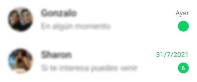 - Automáticamente, aparecerá un círculo de color verde al costado del chat, el cual confirma que el mensaje aún no ha sido leído.