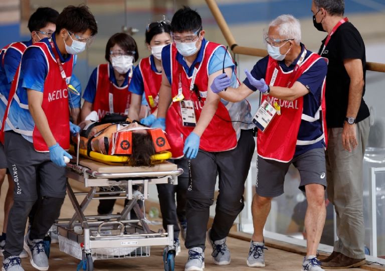 La atleta pudo indicarle a los médicos la zona que presenta dolor, por lo que varios integrantes de su equipo la acompañaron al hospital para descartar lesiones de gravedad.