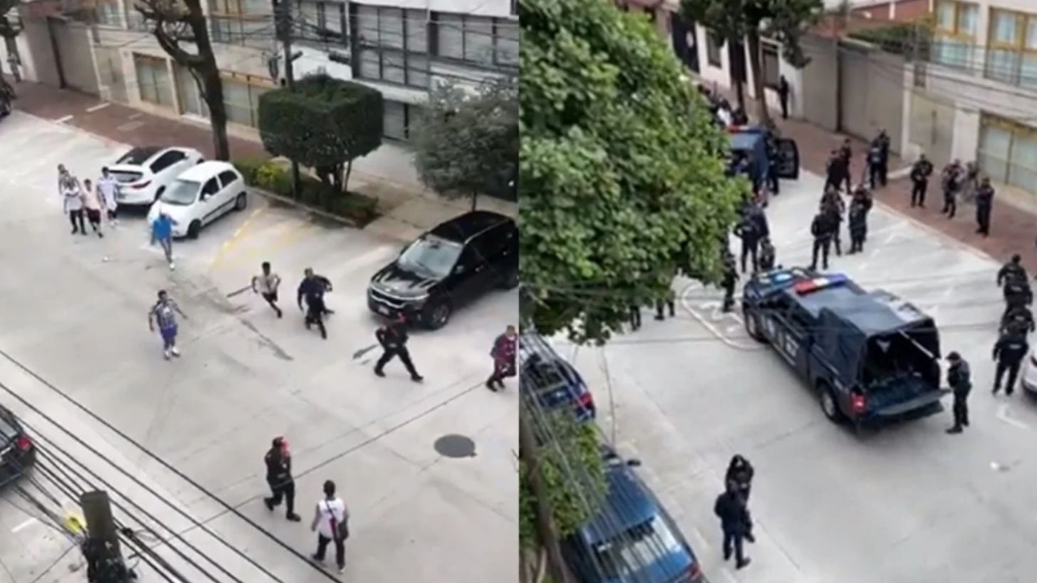 Aficionados de ambos equipos protagonizaron una batalla campal en los alrededores del Estadio Ciudad de los Deportes y, de acuerdo con imágenes compartidas por varios vecinos en redes sociales, obligaron la intervención de agentes adscritos a la alcaldía Benito Juárez.