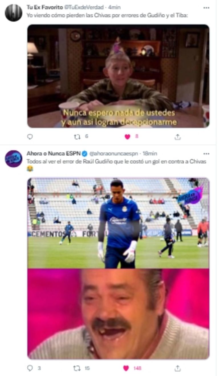 Con este resultado, el Guadalajara se quedó en la zona media de la tabla general con 3 unidades, por lo que intentará regresar a la senda del triunfo la próxima jornada buscando olvidar este resultado rápidamente. Aún así, los memes hicieron acto de presencia en las redes y no solo destrozaron a los tapatíos, sino que se burlaron de la terrible actuación de Raúl Gudiño en el arco.