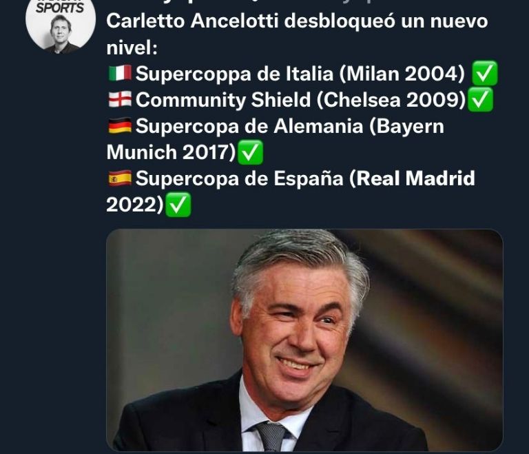 El Real Madrid se coronó campeón de la Supercopa de España tras vencer 2-0 al Athletic de Bilabo, con este trofeo, los dirigidos por Ancelotti se hicieron con su copa número 12 de su historia, la cual fue celebrada en el Estadio Rey Fahd de Arabia Saudita.