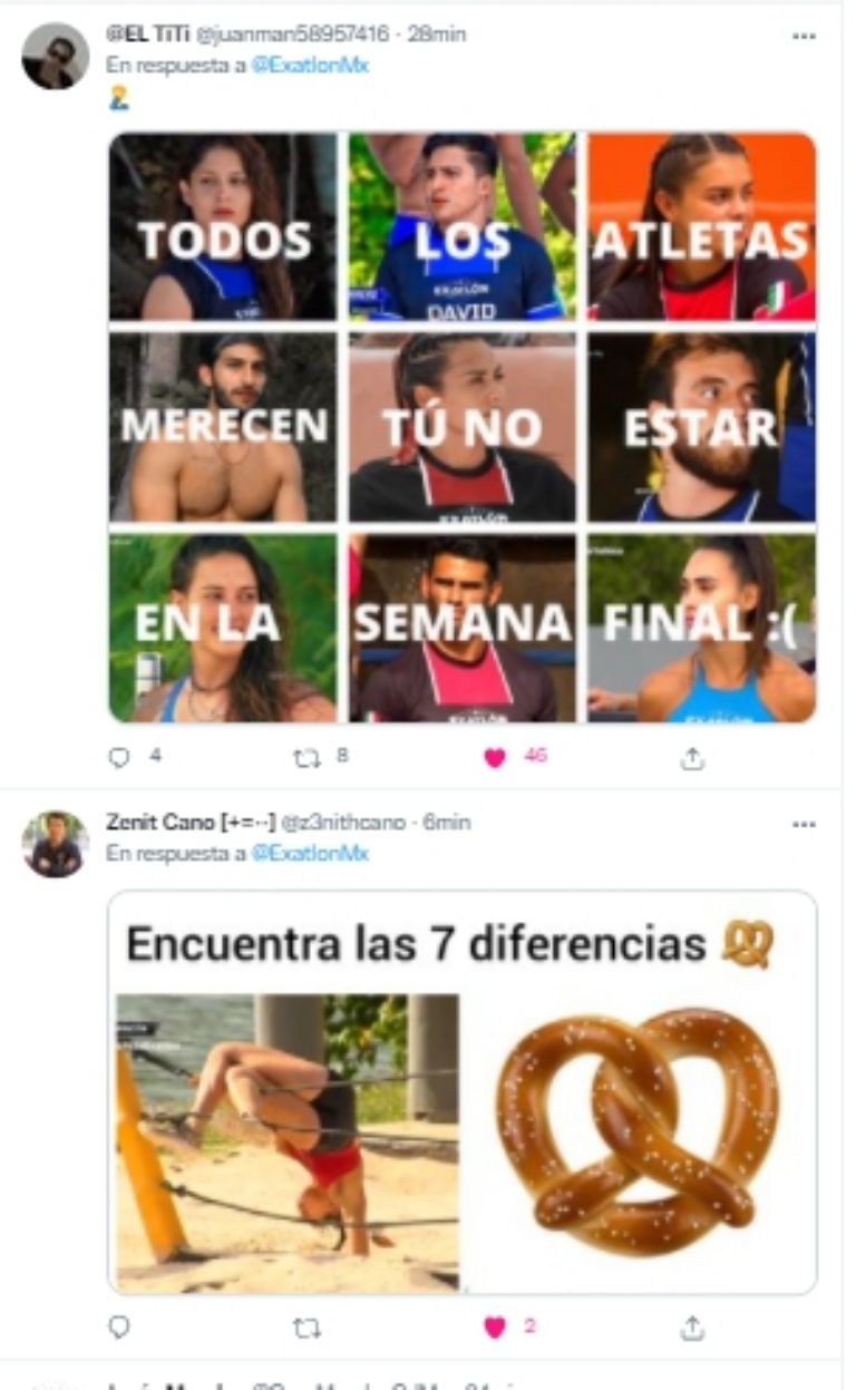 Sin embargo, también hubo usuarios que dejaron a un lado su salida y destrozaron a Zudikey Rodríguez, quien evitó este juego por ser la atleta roja con mejores registros pero que no impidió el repudio de algunos seguidores del reality, los cuales aseguran que la producción la está "protegiendo" para que esta llegue a la final y disputar el galardón femenil con las integrantes del equipo azul.