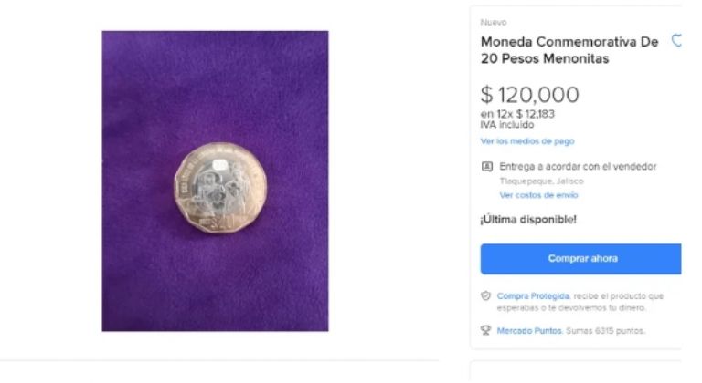 - Esta moneda conmemorativa de los 100 años del arribo de los Menonitas a México vale hasta 120 mil pesos en internet. ¿Cuál es la razón? Su circulación comenzó el 8 de agosto del 2022 y, entre sus características, se encuentra la imagen de una familia menonita en su reverso, la cual hace alusión al ingreso de esta comunidad al país en 1920.