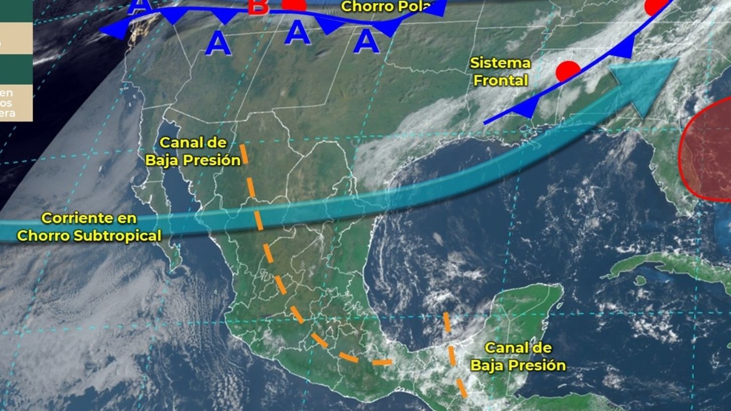 No obstante, una circulación anticiclónica sobre el Pacífico Central Mexicano propiciará escaso potencial de tormentas y ambiente vespertino cálido sobre estados del noroeste, norte, occidente y centro del territorio nacional.