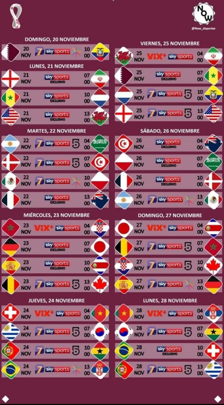 Todos los partidos del Mundial Qatar 2022, guía de canales